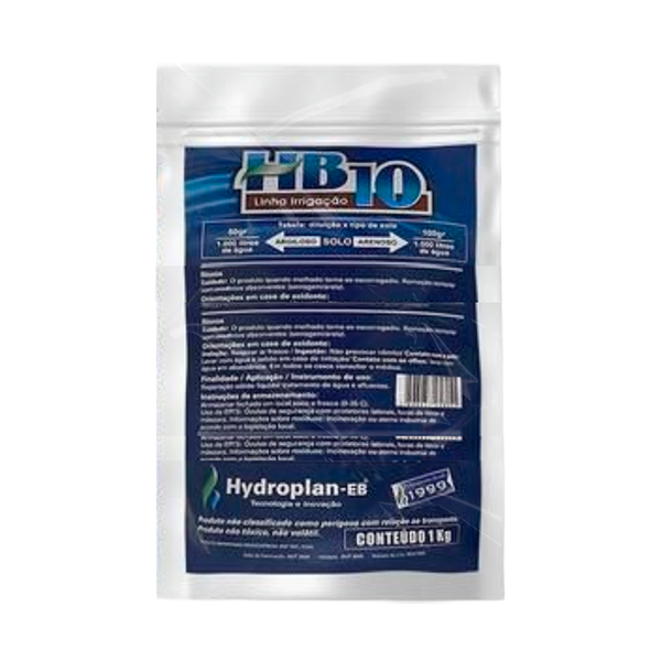 HB10 é um polímero linear desenvolvido para otimizar a irrigação agrícola. Sua ação aumenta a viscosidade da água, reduz a percolação no solo e mantém a umidade na zona radicular, promovendo maior eficiência no uso da água. Além disso, contribui para a estabilidade estrutural do solo, combate a erosão e minimiza perdas de nutrientes e defensivos.